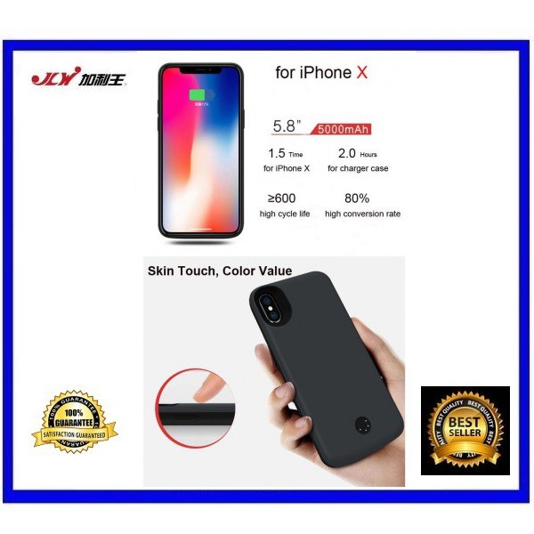 JLW External Backup Battery Case iPhone X XS Power Case 5000mAh Battery Cover Case Powercase Power Bank Powerbank Cover